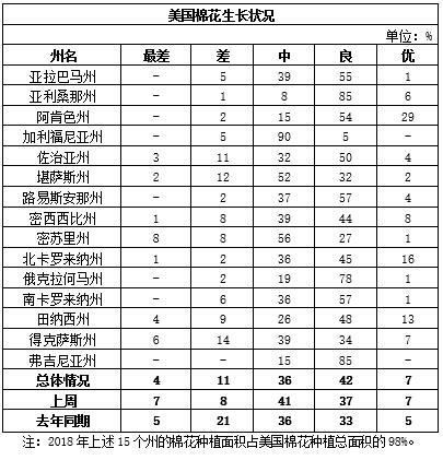 表5:美国棉花生长状况