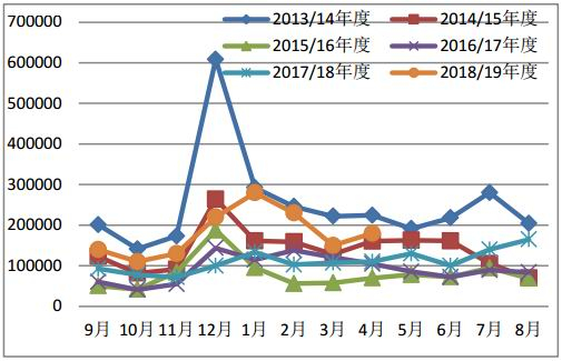 图5:新疆棉出疆量统计