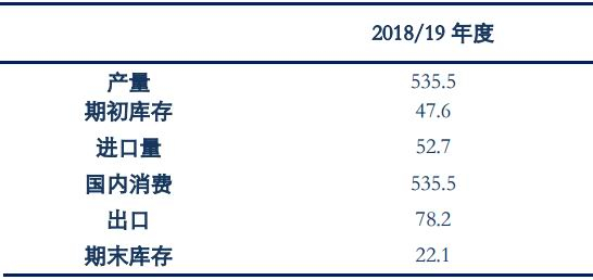 表6:印度棉花协会供需平衡表(2019.6)单位:万吨