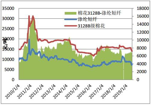 图19:棉花与粘胶短纤价格走势
