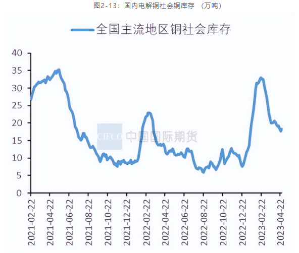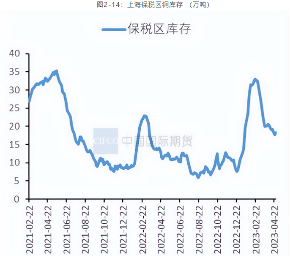 截至4月28日,国内电解铜社会库存为18.35万吨,较前一周持平,较3月底下滑1.84万吨。截至5月5日,国内保税区铜库存为15.86万吨,环比前一周增加0.29万吨。