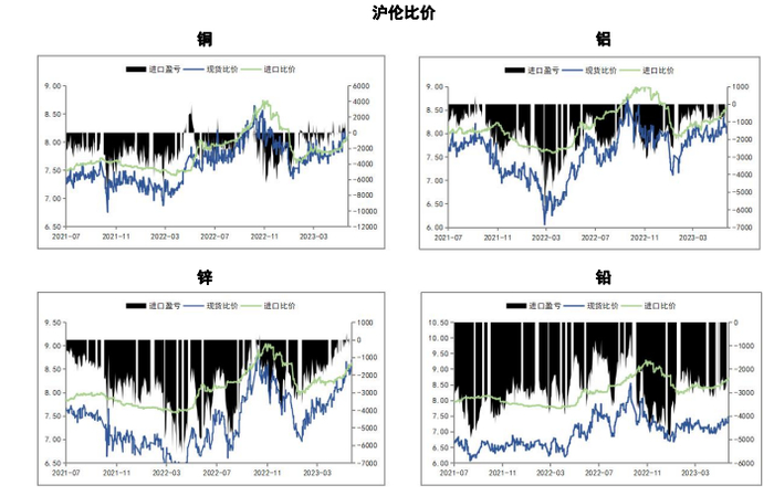 进出口方面,根据模型测算,镍板进口窗口关闭,但长协进口量明显增加,短期下游补库持续性有待观察。镍铁方面,印尼镍铁产量持续增长,现实需求回升程度放缓过剩预期再度提升。综合来看,原生镍市场基本面逐渐触底但关注海外衰退和国内弱复苏对边际过剩预期的纯镍市场影响。