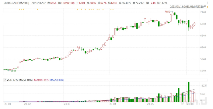 5月26日郑州商品交易所宣布,“自2023年5月30日结算时起,白糖期货2309合约的交易保证金标准调整为12%;白糖期货2311合约的交易保证金标准调整为10%,涨跌停板幅度调整为8%。自2023年6月6日结算时起,白糖期货2309及2311合约的交易保证金标准调整为15%。”