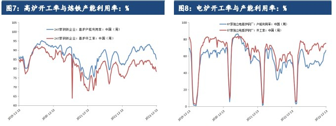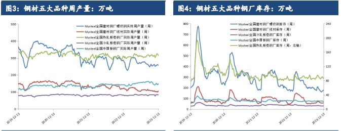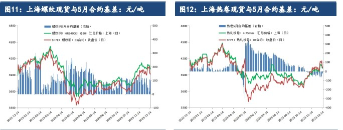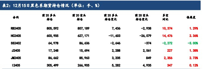 12 月 15 日当周全国日均铁水产量连续 7 周回落并创2 月初以来新低,显示10 月上旬以来的铁矿石、焦炭等钢铁原料消费量进一步下滑。原料消费量持续下滑对铁矿石、焦炭、焦煤期货远月 2405 合约带来较大的回落压力,从而通过预期成本下移推动钢材期货于 12 月 13 日以来跟随明显回落;