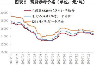 工业硅:现货报价,华东不通氧 553#硅 13600(- 100)元/吨,通氧 553#硅 13700(-100)元/吨,421#硅 14300(-100)元/吨。