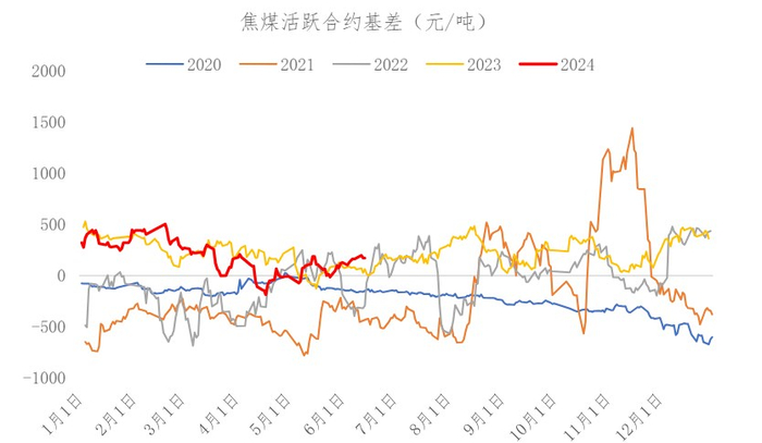 基差方面:山西市场主流价格报价1790/吨,当日活跃合约期货收盘价1657元/吨,基差133,和上一个交易日相比基差走弱(上一交易日基差为172)。