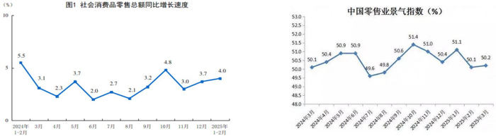 2025年3月6日,中国商业联合会发布3月份中国零售业景气指数(CRPI)。3月份,中国零售业景气指数(CRPI)为50.2%,环比微升0.1个百分点,维持在扩张区间运行。