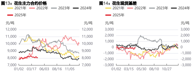 现货方面,花生现货均价8280.00元/吨,环比变化+0.00元/吨,幅度+0.00%,现货基差PK05-116.00,环比变化-56.00,幅度+93.33%。