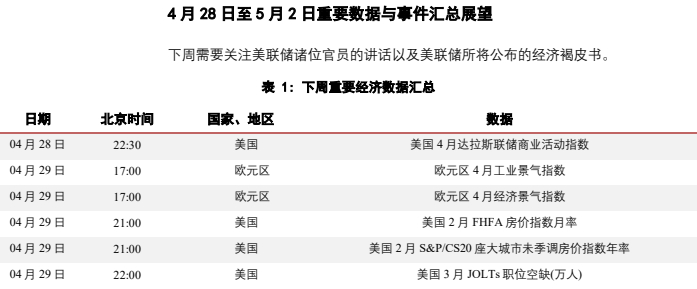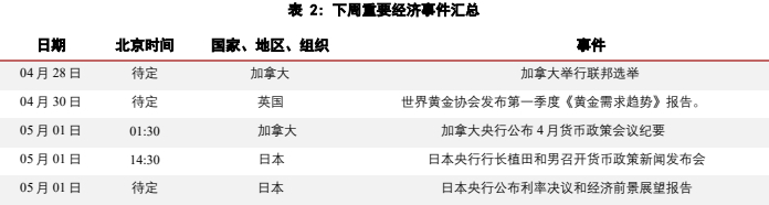 周内,由于特朗普对其关税措施以及对于美联储主席鲍威尔的态度有所缓和,使得市场情绪有所转变,风险情绪在一定程度滋生,美股以及美元均出现反弹,黄金价格则是有所回落。同时现任财长贝森特在此前的讲话中也表达了其依然将会美元相对强势的态度,可见其希望重建市场对于美元资产信心的意愿相对明确,不过更重要的是未来1至2个月将会有较大规模美债到期,倘若处理不当则仍可能会引发流动性的风险。