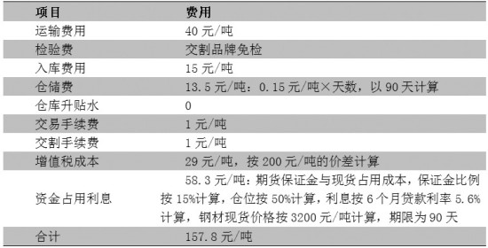 表为螺纹钢期货仓单注册及交割成本