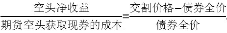 空头净收益=收入-成本=期货价格×转换因子+交割日应计利息-债券净价+当前应计利息