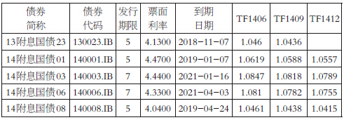 表为TF1406、TF1409、TF1412合约部分可交割券及其转换因子