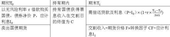 根据无套利定价原理,如果期初买入国债,卖出国债期货,最后交易日进行交割。在期末,现金流为0。