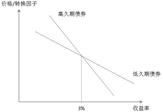 久期:对于收益率在3%以下的国债,久期最小的国债是最便宜可交割的国债;对于收益率在3%以上的国债,久期最大的国债是最便宜可交割的国债。