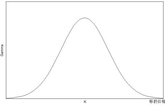 因此,Gamma取任何数值对于投资者构建投资组合来说都存在一定的风险。只有Gamma中性即为0时,才能真正的规避Gamma风险,降低交易组合风险。期权的这种Gamma风险,在期权平值或者临近到期时最大。上图展示了看涨期权的Gamma与标的资产价格的关系。