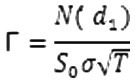 公式中,d1由BS模型得出,而N(x)为标准正态分布的密度函数。S0为标的资产价格,σ为标的资产价格的波动率,T为期权的期限。值得注意的是,作为期权的买方,Gamma的值大于0,而作为期权的卖方,Gamma的值小于0。
