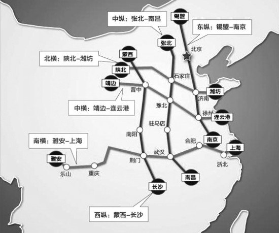 “十二五”期间将建成“三纵三横”网架