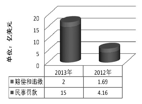 为达到警示市场、保护投资者利益的效果,CFTC在2013年加大了处罚力度,并在投资者赔偿方面探索完善赔偿制度。2013年,CFTC对违规处罚的罚款金额达到17亿美元,为历年处罚金额之最,而2012年仅为5.85亿美元,为2013年的三分之一。
