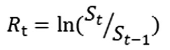 第一步:计算每日市场价格变动情况。计算当日(t)资产价格(S)与前一天(t-1)资产价格(S)的比值,并取自然对数: