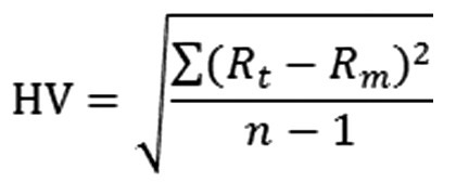 第三步:计算 。历史波动率(HV)就是资产价格关于均值的平均偏差(即标准差),计算公式为: