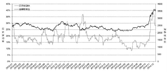 最后,比较当前隐含波动率与历史隐含波动率。隐含波动率接近历史最高水平,是利用该策略的好时机。