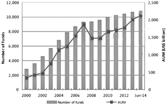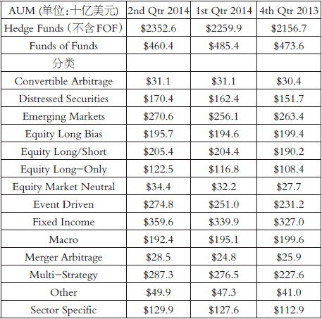 2014年7月,全球对冲基金的数量达到了10844家。我们可以做一个简单的对比:在2000年,全球对冲基金的总资产为3350亿美元,由2840家基金公司管理。