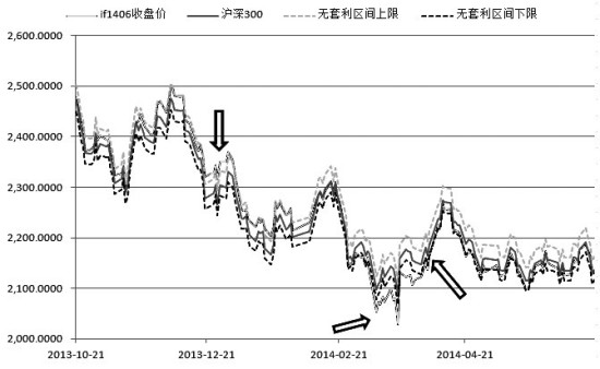 特别对1406合约进行套利区间的界定,计算发现出现多次期货价格偏离无套利区间的情况,不乏套利机会。