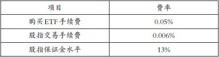 固定成本为进行期现套利所需的直接交易费用,包括购买ETF、做空股指期货,以及与此交易有关的买卖佣金及手续费等。相关费率水平如下: