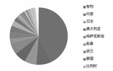 图为2015年1—2月进口精炼铜来源国分布
