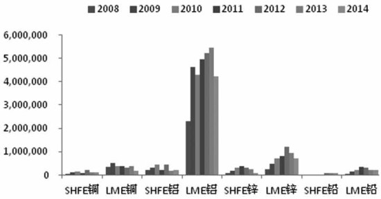 图为2014年LME各金属的市场占有率
