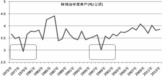 图为马来西亚棕榈油年度单产(吨/公顷)