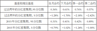表为分红密集期基差与理论基差的差值
