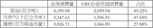 表为2013年能源类商品全球及OECD成员国消费量
