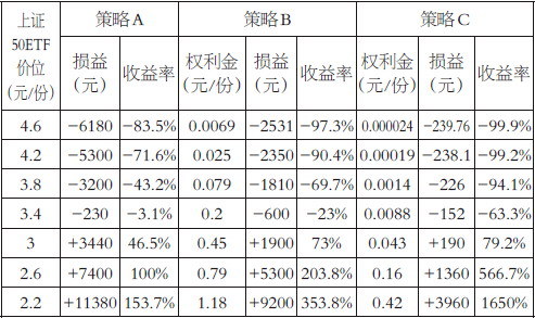 策略C:买入1手两个月期,执行价格为2.6元/份的深度虚值认沽期权,权利金为240元。