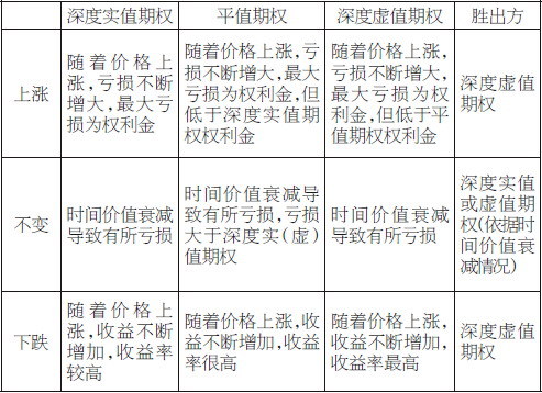 表为不同状态下期权的权利金对比