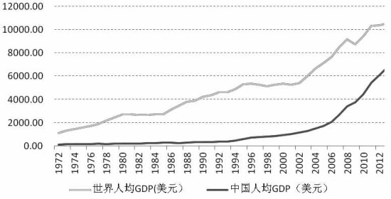 图为世界和中国人均GDP