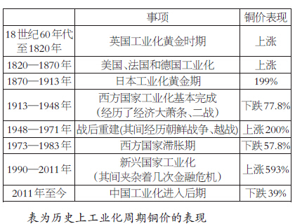 工业化不同阶段铜价不同的表现