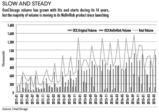 2010年,OneChicago做出了关于产品性质的一项重要决定,重新设定合约规格,使得期货产品的收益复制总回报互换。“在最初推出单一股票期货这一产品时,人们就对它产生了误解。”OneChicago CEO,David Downey说:“我们并不需要单一股票期货交易所像其他交易所一样,将买卖双方聚集起来,只是充当交易中介,为市场提供流动性。人们没有意识到这是一个已经存在的市场,证券期货实际上一直在活跃交易中,只是市场还不够透明而已。”通常,作为中介结构的证券经纪商并不热衷于竞争。因此,经纪商绝不愿开放单一股票期货市场。正如Downey所说,经纪商认为单一股票期货市场将对自身的利益造成威胁,他们不会允许自己的客户参与该市场投资。