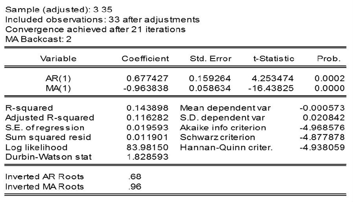下面利用Eviews建立ARIMA(1,1,1)模型。