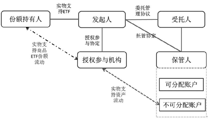 发行者与授权参与者签订协议,赋予后者在市场上向普通投资者销售ETF基金份额的权力,普通ETF投资者只能在二级市场买卖该ETF基金份额。为了确保发行者发行的ETF基金份额有相应的商品资产支持,发行者还会与商品合约对手方签订证券协议。发行者需要根据协议全额持有对手方发行的、与持有商品期货头寸相对应的证券。