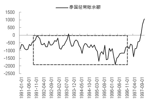 20世纪80年代末以前,泰国一直实行较为严格的外汇管理制度,90年代以后,为了吸引外资,泰国基本开放了其资本项目,1989年,外国私人资本面向泰国的流出与流入分别在1000亿泰铢左右,1994年则分别达到了15000亿泰铢左右,且其中短期资本占比较大、增长较快。1995年至1996年,非居民泰铢存款、企业短期美元借款、股票市场国外投资等快速增加,大量外国资本流向股票市场和房地产市场,引起股票价格和房地产价格飞涨,形成资本价格泡沫。1996年房地产泡沫破灭造成商业银行和金融公司经营状况恶化,巨额不良资产使泰国金融市场更加动荡,泰铢贬值预期持续升温。
