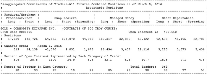 交易员持仓报告是黄金市场中最重要的“出版物”之一,它一般由CFTC在美国东部时间每个星期五的15:30发布,该报告会向市场参与者们提供“达到或超过由CFTC所制定的报告标准的交易员,其在每个星期二的持仓信息”。