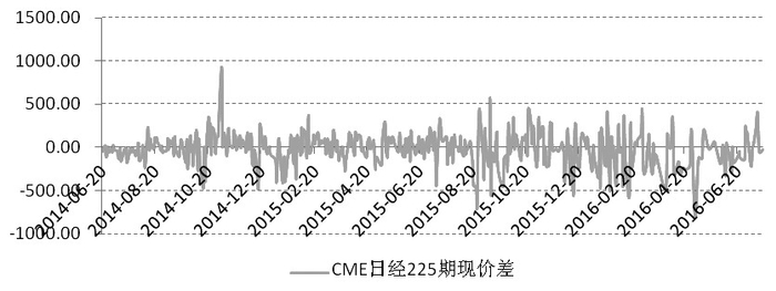 图为CME日经225指数期货(日元)期现价差