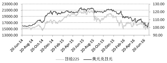 图为日经225指数和美元兑日元走势