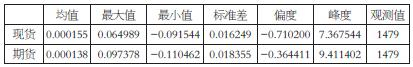 表为沪深300期现货日收益率的描述性统计量