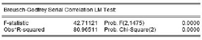 要检验残差项的序列自相关,在此将采用LM法检验序列自相关,结果如下: