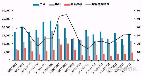 印度方面,同样对16/17年度的产量维持不变在577.0万吨,我们认为后期仍存在下调可能;消费、出口均不变;期末库存240.5万吨,增11.1万吨;库存消费比39.58%,上调1.82%,总体报告偏空。