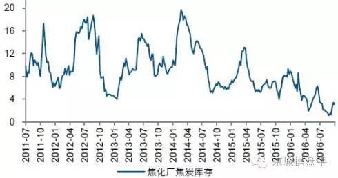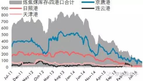 三、焦煤、焦炭的库存较低,尤其焦煤库存一直持续下降,不断创新低