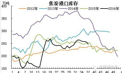 钢材(螺纹钢+线材+热卷+冷轧+中板)的总库存比往年都低很多,大幅低于往年,严重的低库存下,催生了螺纹、热卷的牛市,同时也使补库存成为2016年的全线,拉动了对上游---焦炭、焦煤的需求。