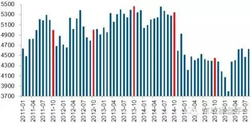 下半年以来,焦煤的库存持续下降,钢厂、焦化厂、港口的焦煤库存一直处于快速的下滑中,相比,焦炭的库存并不算低。焦煤、焦炭的库存要紧张于钢材和矿石,从库存水平来看,铁矿石的港口库存整体延续了2015年6月以来的上涨趋势;钢铁的社会库存则在今年7月份,呈现低位回升;焦煤的钢厂库存保持下行。所以双焦的表现好于螺纹、铁矿石。